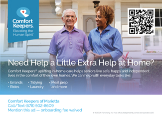 Comfort Keepers of Marietta provides non-medical in-home care for seniors and other adults who need extra help accomplishing their ADL’s and/or IADL’s.