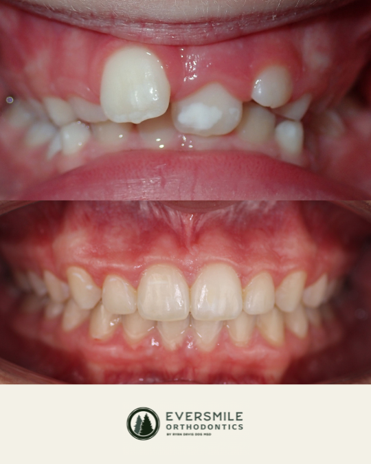 One of our most meaningful patient experiences involved a young patient who came to us with severe crowding that had displaced a front tooth completely out of the supporting bone and gums, putting the tooth at high risk of being lost. She also struggled with significant airway issues caused by an extremely narrow palate, which affected her breathing and sleep. Midway through treatment, her family experienced unexpected financial hardship, creating real concern about whether she would be able to continue the care she urgently needed. Our team worked closely with the family to offer flexible financing options so treatment could continue without interruption. Ultimately, the outcome was life-changing: we were able to create enough space to guide the tooth back into a stable position, allowing the bone and gums to regenerate naturally around it. Palatal expansion not only resolved the crowding, but also increased her airway volume, dramatically improving her ability to breathe through her nose. Today, she no longer snores at night, and her sleep quality, cognitive focus, and behavior have noticeably improved. For our team, this case represents what exceptional care truly means; combining clinical skill, compassion, and a commitment to doing what is right for each patient and family.